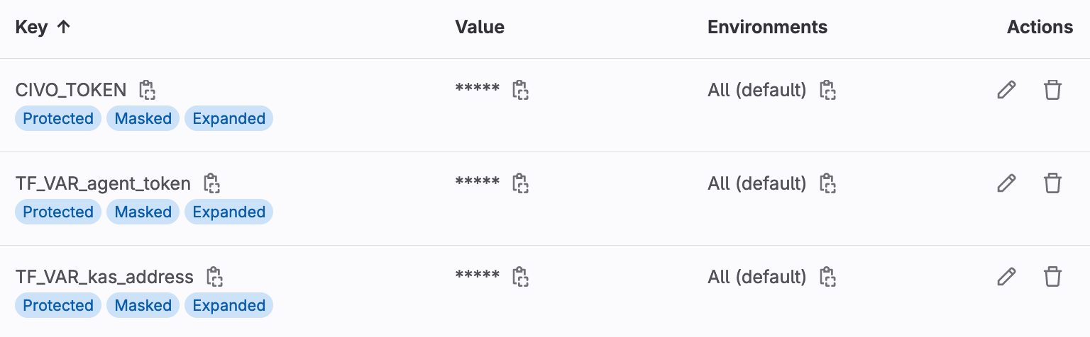 TF_VAR_agent_version: Set the version of the GitLab agent for Kubernetes. -